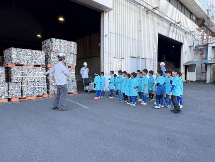 当社は、11月3日にサッカーJ3所属クラブ「アスルクラロ沼津」のスクール生22名をお迎えし、『アスルdeサステナ特別イベント』の一環として、当社の特徴である使用済み飲料缶を圧延材料に再生する「アルミ缶リサイクルプラント(静岡県駿東郡小山町)」をご案内しました。スクール生には、ホームスタジアムで回収された使用済みアルミ缶が新しいアルミ缶に生まれ変わる工程を学んでいただき、皆、大型設備やフォークリフトにも興味を示すなど、意欲的に学ぶ姿が印象的でした。