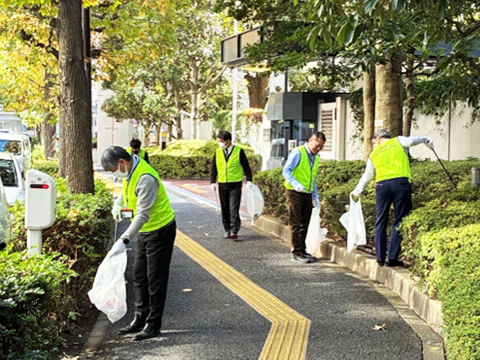 参加者は2班に分かれ、浜松町駅南西エリアと芝公園駅東エリアで清掃活動を行いました。人目につきにくい街路樹の周辺や歩道の隅に捨てられていたゴミを中心に回収し、地域の美化に貢献することができました。